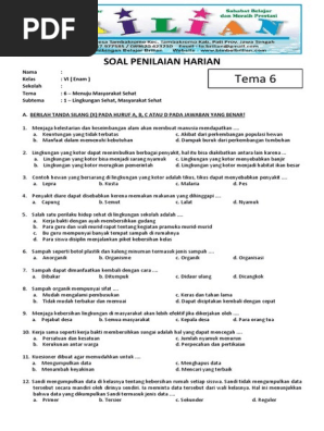 Soal Penilaian Harian Kelas 6 Tema 5 : Soal Tematik Kelas 6 Tema 5 Kompetensi Dasar Bahasa Indonesia Juragan Les : Soal ini terdiri dari kumpulan butir pertanyaan dari mata pelajaran tematik seperti bahasa indonesia, ppkn dan sbdp berupa pilihan ganda, isian dan uraian (essay).